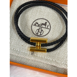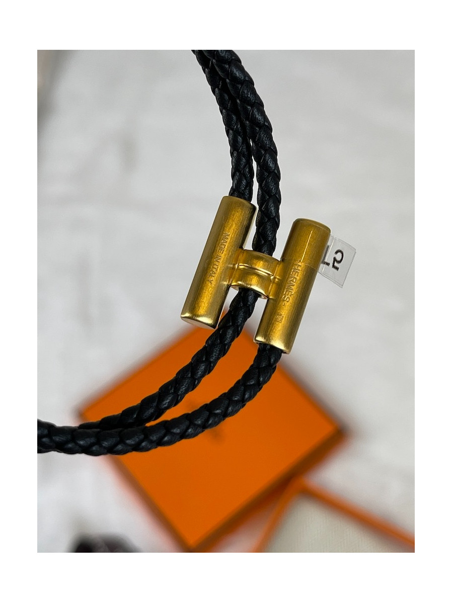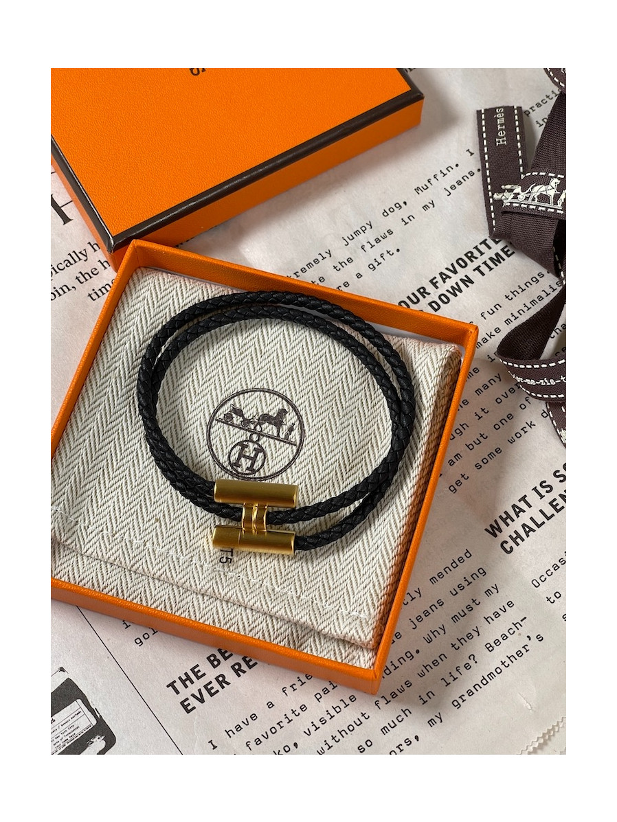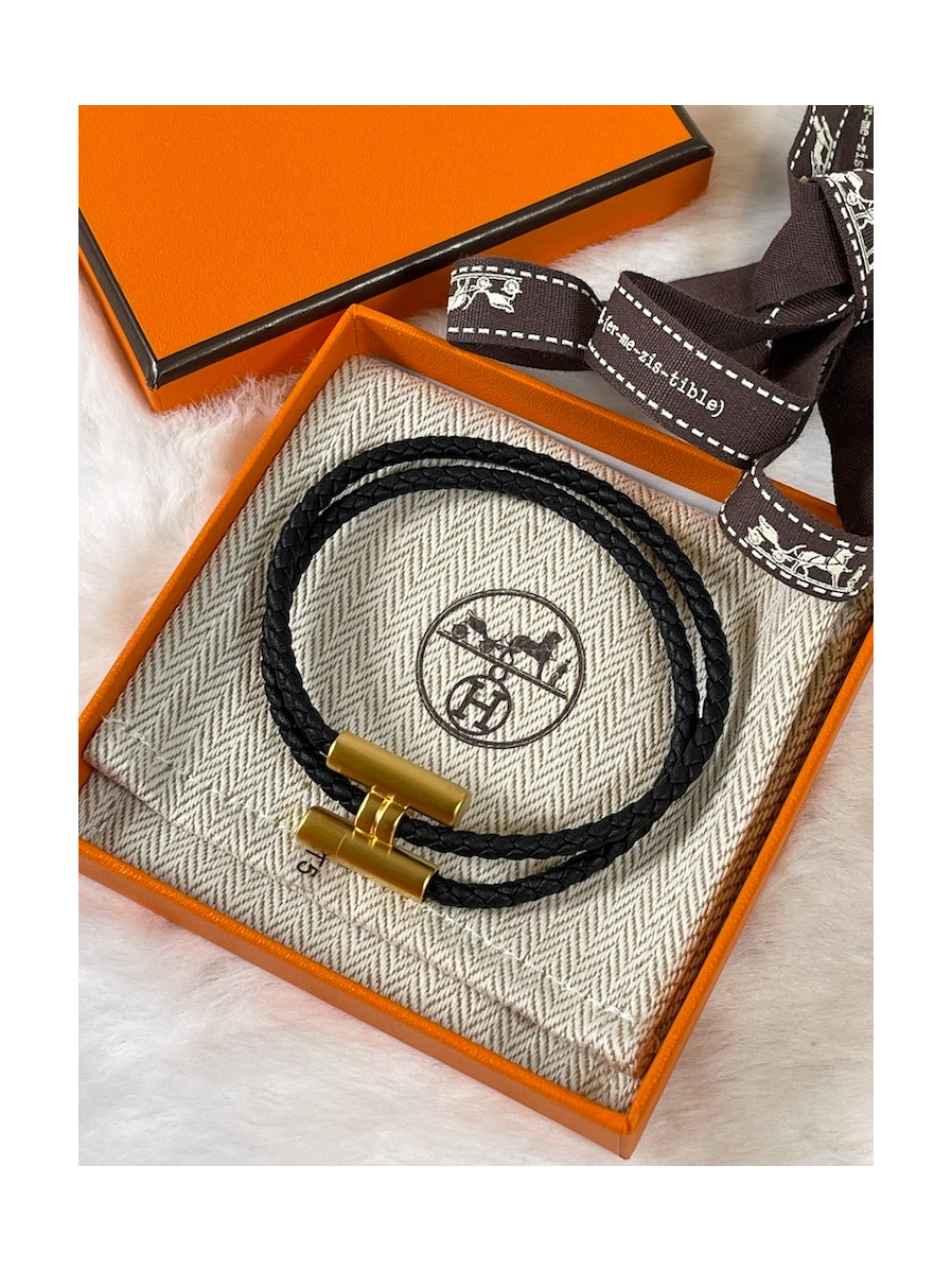 에르메스 Tournis Tresse 팔찌 블랙 금장