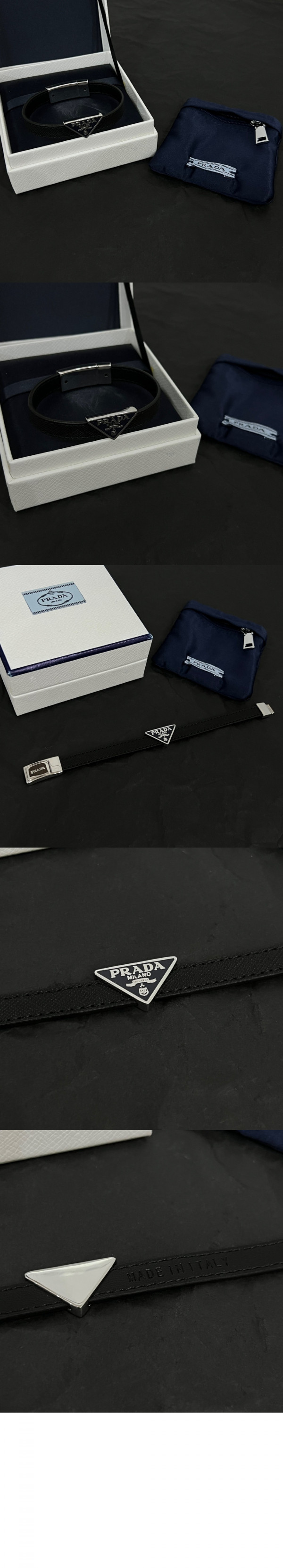 • 프라다 트라이앵글 로고 레더 브레이슬릿 2IB289