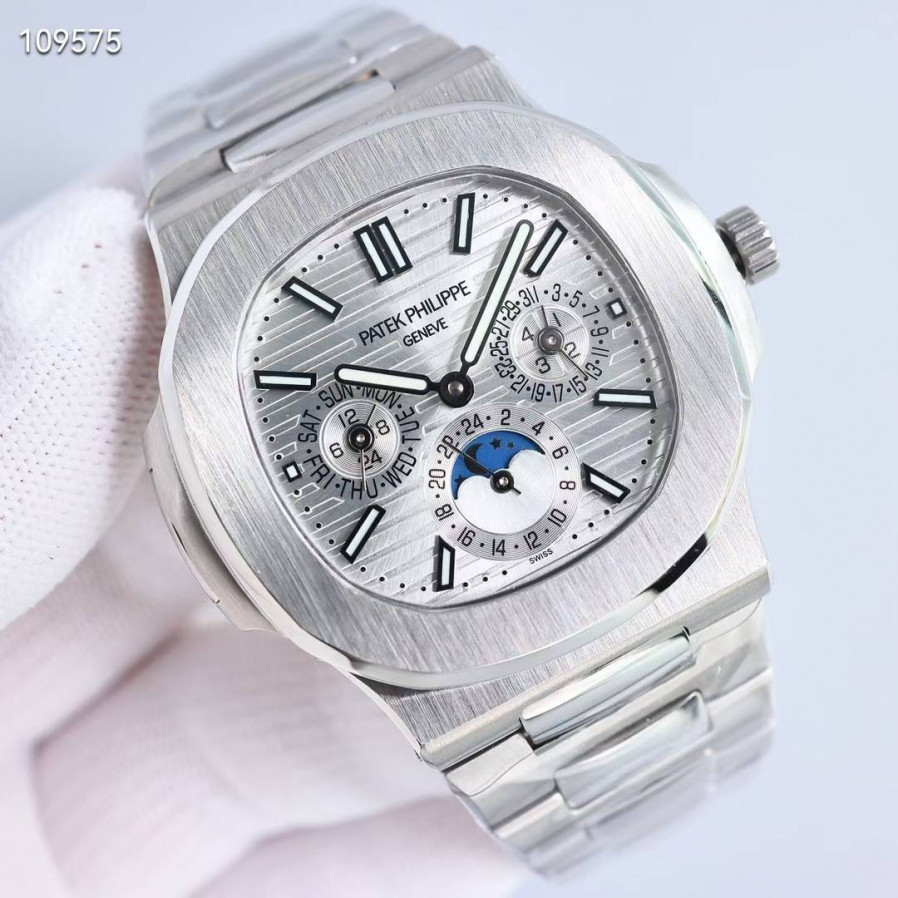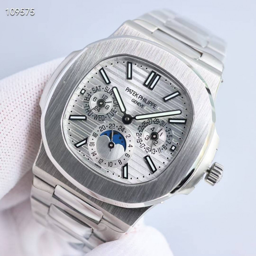 파텍필립 노틸러스 퍼페츄얼 캘린더 실버 화이트 컬러 시계 워치
